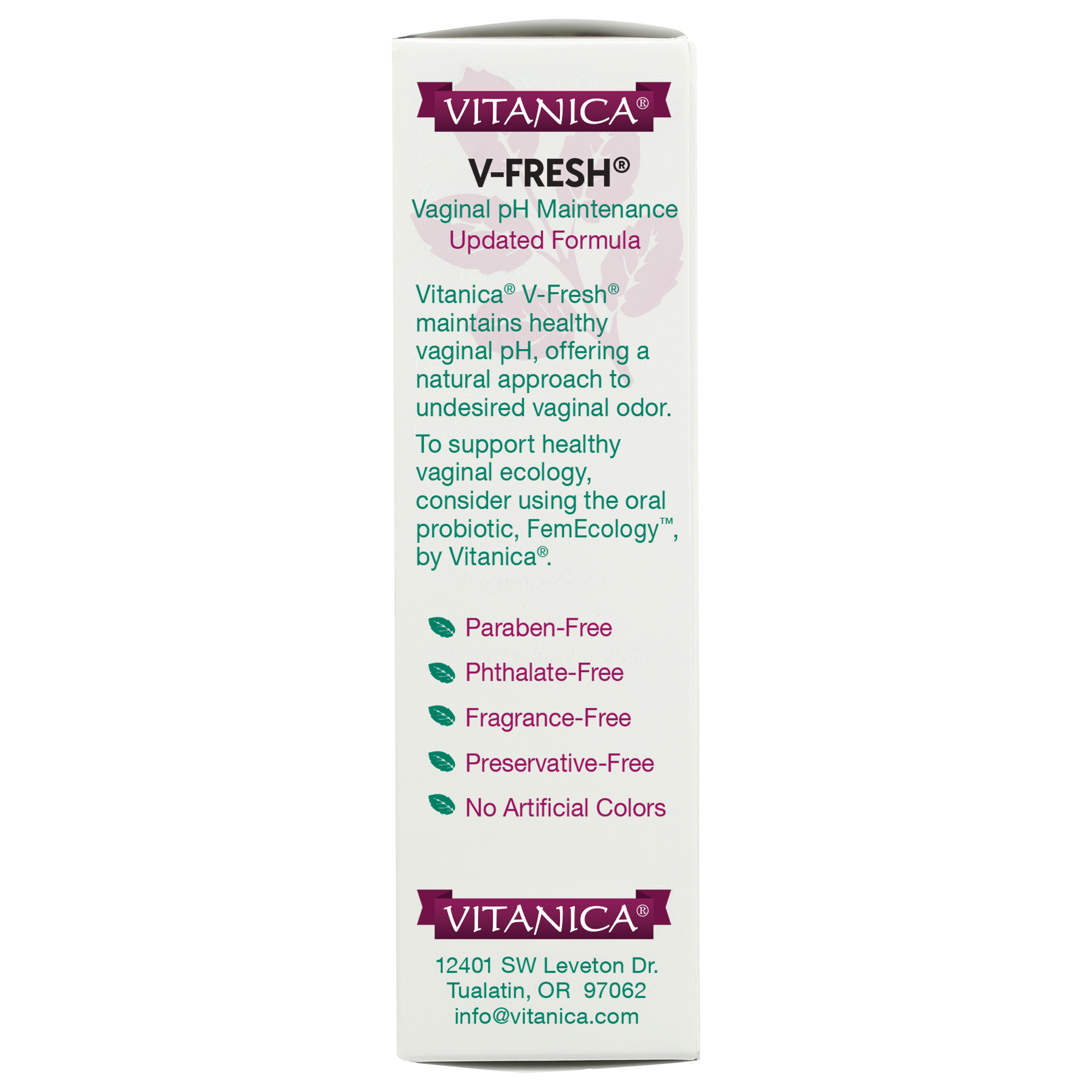 Other Considerations: To support a healthy vaginal ecology, consider using an oral probiotic, FemEcology™, by Vitanica®.